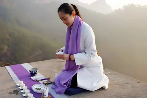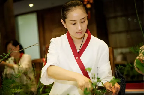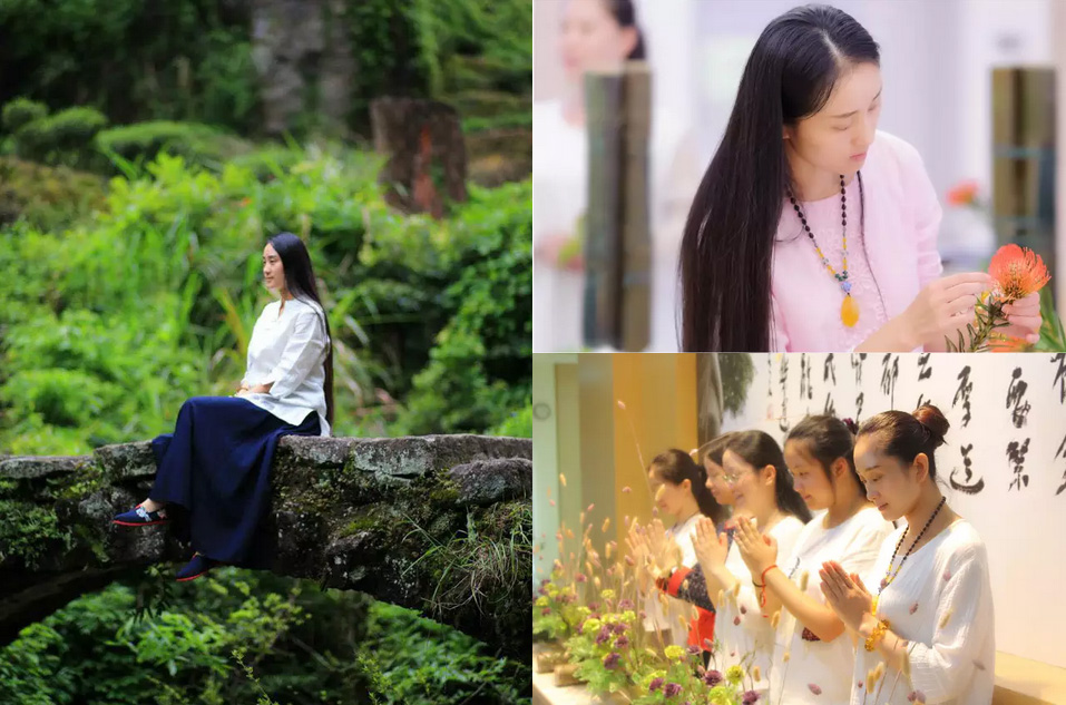 初见到刘若寒,便被她一袭黑袍,一头秀丽的长发所惊艳。她在一旁安静地收捡花枝,精心打包花束,一边招呼着我稍等片刻,宛如一位仙子,淡雅,宁静。2016年刘若寒高票荣膺林派花道网络票选最美花神美称,一袭紫衫的她让众人连连赞叹,神似“大话西游”里的紫霞仙子。很难想象,来自山东潍坊的刘若寒,已经礼佛十余年,研花近五载。置上一束鲜花,煮上一壶沉香茶,刘若寒开始讲述她这“佛骨仙风”的十余年。