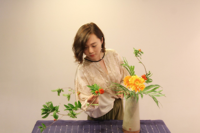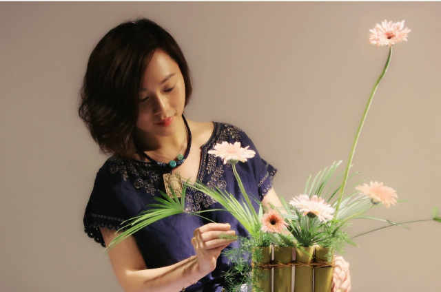 小编在初次见到郑翕文时,她身着素衣,头饰发巾,悠闲地在花丛里挑选着自己喜欢的花,惬意且淡雅。郑翕文除林派花道金牌导师这一身份之外,还是中国传统文化的倡导者和传承者。身着汉服的她,仿佛是从古装剧里走出来的女主角,柔情似水,温文尔雅,着实一番醉人模样。在万般花丛中,沏上一壶沉香茶,郑翕文缓缓诉说她的传承之路。