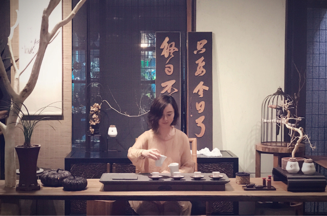其次缘于茶。因着一片神奇的东方树叶,恋上茶的世界,这个世界有一袭绝美的衣裳,茶空间。茶汤的美妙在鼻、舌、身、意中绽放,而眼和耳的所有感触都在催促我去遇见花道,去听这方寸间花开的声音。