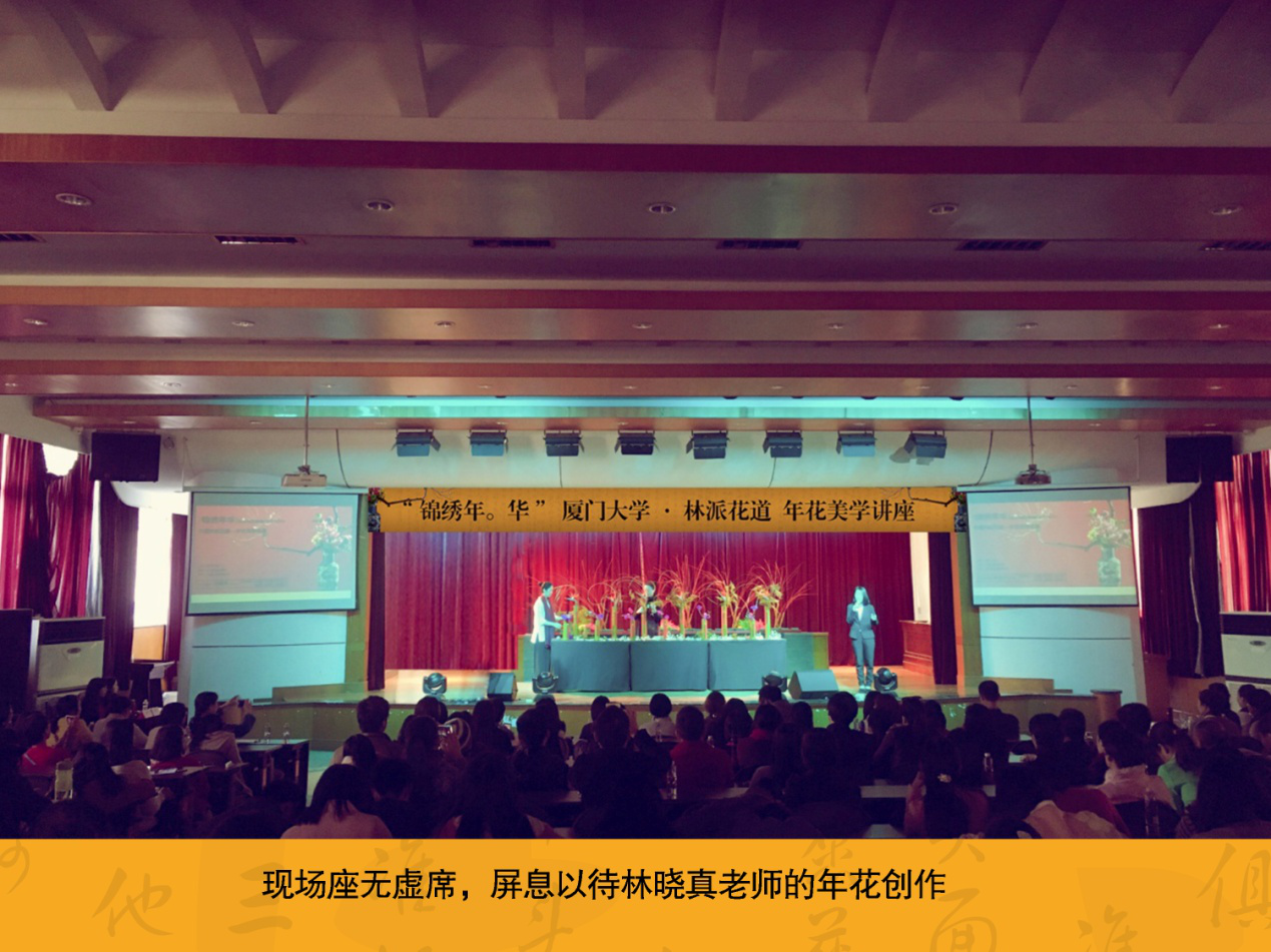 2016年12月16日,锦绣年华·林派花道年花讲座于厦门大学华丽登场。林派花道创始人林晓真老师携林派花道全国导师团亮相厦大,为来自五湖四海的花道爱好者及厦大的莘莘学子,献上一场视觉上的饕餮盛宴。