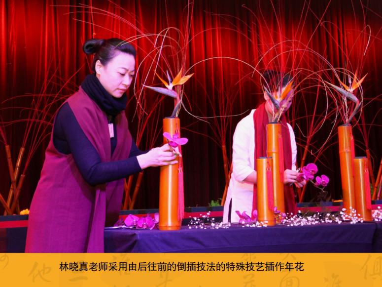 娇艳欲滴的兰花,翠绿青葱的文竹,展翅欲飞的天堂鸟,在林晓真老师的精心创作下,显得喜气祥和,年味十足。来自全国各地的林派花道导师团金牌导师孙青青、张艳亚、林派同门导师黄华娟、范静云、谢小莉及林派导师林雅莉也在现场创作年花,为即将到来的新春献上了自己的祝福。花开富贵,共呈吉祥,祝愿大家凤年幸福美满,平安喜乐。